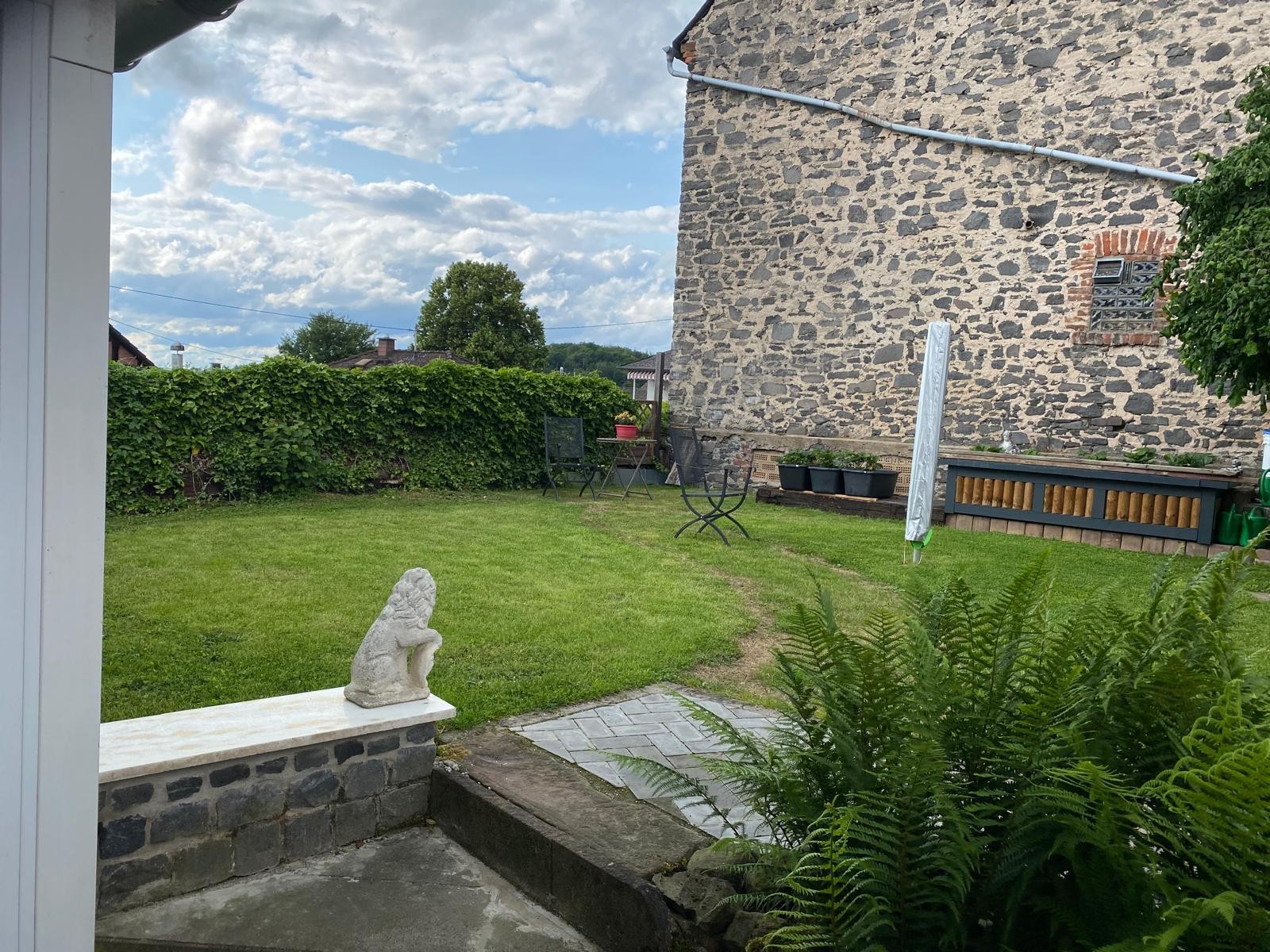Der Garten ist ein echtes Highlight: leicht hanglagig, liebevoll angelegt und mit freiem Blick nach Westen. Ob entspannte Nachmittage auf der überdachten Terrasse, gesellige Abende im Grünen oder spielende Kinder auf der großzügigen Rasenfläche – dieser Außenbereich bietet Raum für Lebensqualität. Ein Gartenhaus, ein Hochbeet sowie ein weiterer Ausgang zur Straße runden das stimmige Gesamtbild ab. Mehrere PKW-Stellplätze befinden sich direkt auf dem Grundstück.